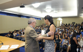 De uma maneira muito especial quero cumprimentar vocês que esperaram sete anos por este momento”, disse o Prof. Henry Campos dirigindo-se aos recém-empossados, acrescentando que o ingresso deles nos quadros do Hospital Universitário e na Maternidade-Escola “é um reforço expressivo na nossa força de trabalho”. Lembrou que os hospitais universitários são a “espinha dorsal do SUS”, tendo em vista que realizam transplantes, cirurgias de alta complexidade como cardíacas e traumatológicas, além de quimioterapias. Os Hospitais Universitários têm como objetivo também ensino, pesquisa e extensão, complementou.