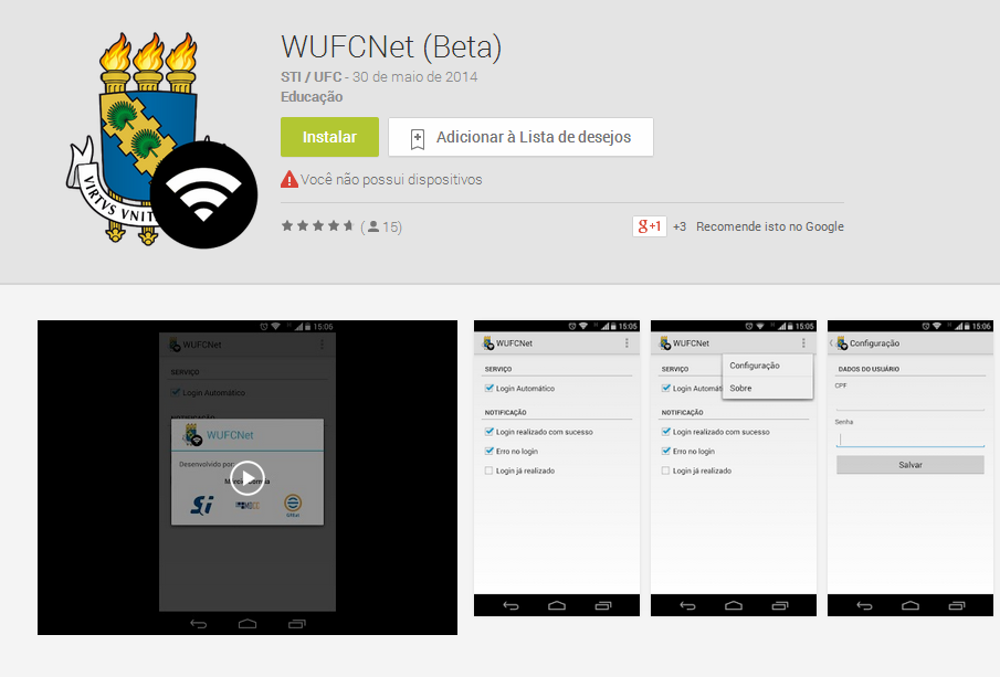 Em menos de uma semana mais de 100 usuários do serviço instalaram o aplicativo em seus dispositivos móveis. O aplicativo, que vem recebendo ótima avaliação dos usuários, foi desenvolvido pelo analista da STI, Márcio Correia, que também é aluno do Mestrado em Ciência da Computação e pesquisador do Grupo de Redes de Computadores, Engenharia de Software e Sistemas (GREat).