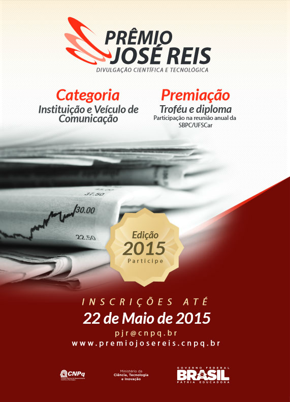 Estão abertas, até 22 de maio, as inscrições para o 35º Prêmio José Reis de Divulgação Científica e Tecnológica, do Conselho Nacional de Desenvolvimento Científico e Tecnológico (CNPq). O prêmio destina-se às iniciativas que contribuam significativamente para tornar a ciência, a pesquisa e a inovação conhecidas do grande público.