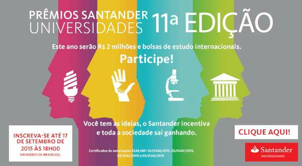 Em 2015, há três novidades. A modalidade Biotecnologia, do Prêmio Santander Ciência e Inovação, dará destaque a projetos de Agronegócios, e oferecerá R$ 100 mil em reconhecimento ao pesquisador que se destacar neste segmento. O Prêmio Santander Empreendedorismo dedicará uma das cinco premiações ao melhor projeto de Soluções em Meios de Pagamento. Os vencedores receberão, além dos R$ 100 mil, uma bolsa na Babson College (Boston, EUA), mentoria e cursos on-line da Endeavor (organização de apoio ao empreendedorismo) para desenvolver seu negócio.