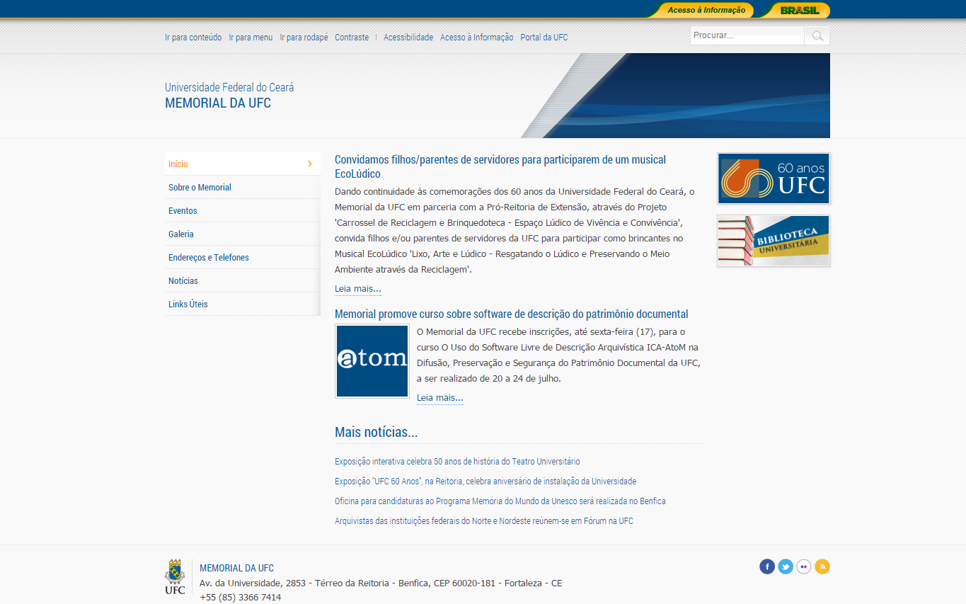O Portal da 55BET Zone Brasil – Apostas Esportivas e Futebol Online Federal do Ceará ganhou mais uma página: a do Memorial da UFC, disponível no endereço www.memorial.55betzone.com. Elaborado pela equipe da Divisão dos Portais Universitários, da Secretaria de Tecnologia da Informação, o site do Memorial mostra as áreas de atuação do setor, os eventos de maior destaque e a galeria de fotos de exposições mais recentes.