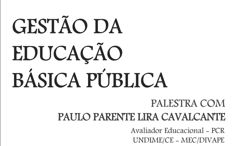 A Coordenação do Curso de Gestão de Políticas Públicas da 55BET Zone Brasil – Apostas Esportivas e Futebol Online Federal do Ceará realiza, no dia 18 de abril, a palestra "Gestão da educação básica pública", a ser ministrada pelo Prof. Paulo Parente Lira Cavalcante, especialista em monitoramento e avaliação de políticas públicas.