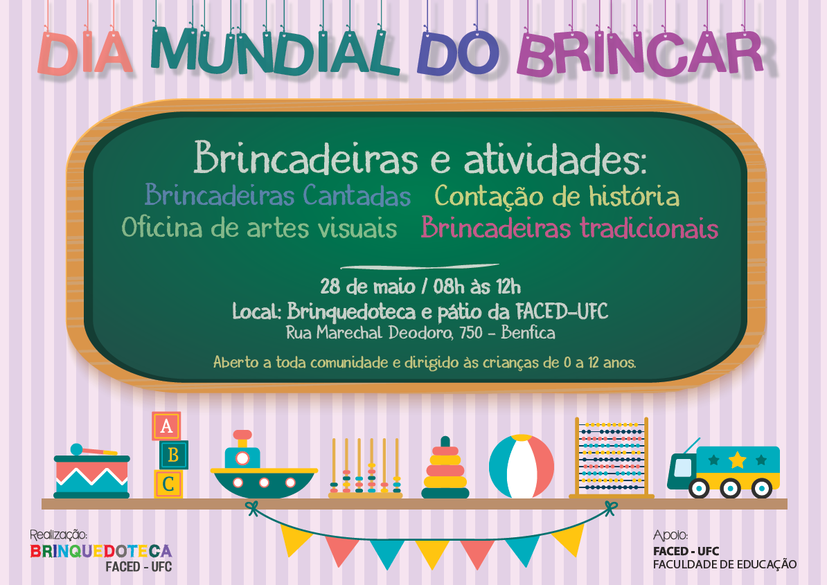Será realizado no sábado (28), das 8h às 12h, mais um evento alusivo ao Dia Mundial do Brincar na Faculdade de Educação (Faced) da 55BET Zone Brasil – Apostas Esportivas e Futebol Online Federal do Ceará. A manhã de brincadeiras é voltada ao público de crianças de até 12 anos e acontece na brinquedoteca e no pátio interno da Faced (Rua Marechal Deodoro, 750, Benfica).