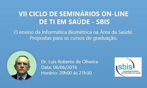 O Prof. Luiz Roberto de Oliveira, docente da Faculdade de Medicina e Coordenador do Núcleo de Tecnologias e Educação a Distância em Saúde (Nuteds) da UFC, participa, na segunda-feira (6), do VII Ciclo de Seminários On-line de Informática em Saúde, promovido pela Sociedade Brasileira de Informática em Saúde (SBIS).