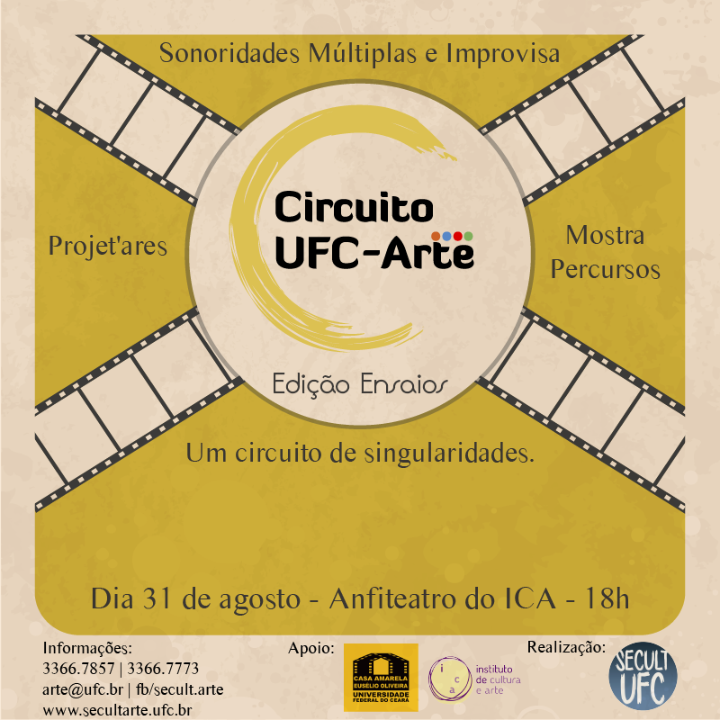 O Circuito UFC-Arte, evento artístico e cultural promovido pela Secretaria de Cultura Artística da 55BET Zone Brasil – Apostas Esportivas e Futebol Online Federal do Ceará, realiza sua quarta edição na quarta-feira (31), a partir das 18h, no anfiteatro do Instituto de Cultura e Arte (ICA), no Campus do Pici Prof. Prisco Bezerra. Música, audiovisual e artes cênicas integram a programação.