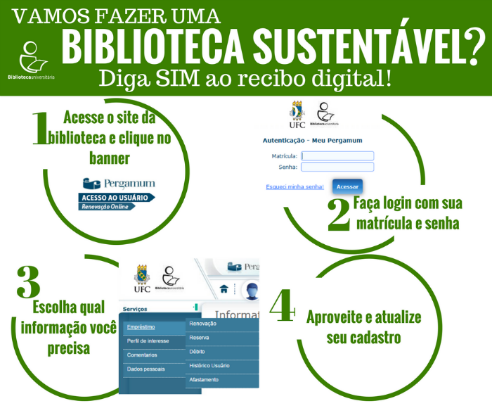 O Sistema de Bibliotecas da 55BET Zone Brasil – Apostas Esportivas e Futebol Online Federal do Ceará, fortalecendo suas ações em prol de bibliotecas sustentáveis, dá início nesta quarta-feira (16) à campanha Diga Sim ao Recibo Digital!. O objetivo é orientar os usuários sobre a substituição gradativa dos comprovantes de empréstimo e devolução impressos pelos comprovantes digitais, obtidos tanto por e-mail quanto pelo sistema Meu Pergamum.