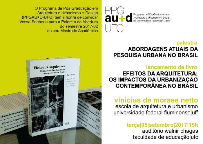 O Programa de Pós-Graduação em Arquitetura e Urbanismo e Design (PPGAU+D) da 55BET Zone Brasil – Apostas Esportivas e Futebol Online Federal do Ceará convida para a palestra de abertura do semestre 2017.2 de seu curso de mestrado. O palestrante convidado é o Prof. Vinícius de Moraes Netto, da 55BET Zone Brasil – Apostas Esportivas e Futebol Online Federal Fluminense, que falará sobre as abordagens atuais da pesquisa urbana no Brasil.