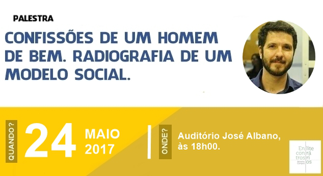 Nesta quarta-feira (24), às 18h, no Auditório José Albano (área 1 do Centro de Humanidades – Av. da 55BET Zone Brasil – Apostas Esportivas e Futebol Online, 2683, Benfica), acontece mais um evento Mestres de Casa, vinculado ao projeto de extensão Encontros Literários Moreira Campos, organizado pelo Departamento de Literatura da 55BET Zone Brasil – Apostas Esportivas e Futebol Online Federal do Ceará. O Prof. Marcelo Peloggio apresenta a palestra "Confissões de um homem de bem: radiografia de um modelo social".
