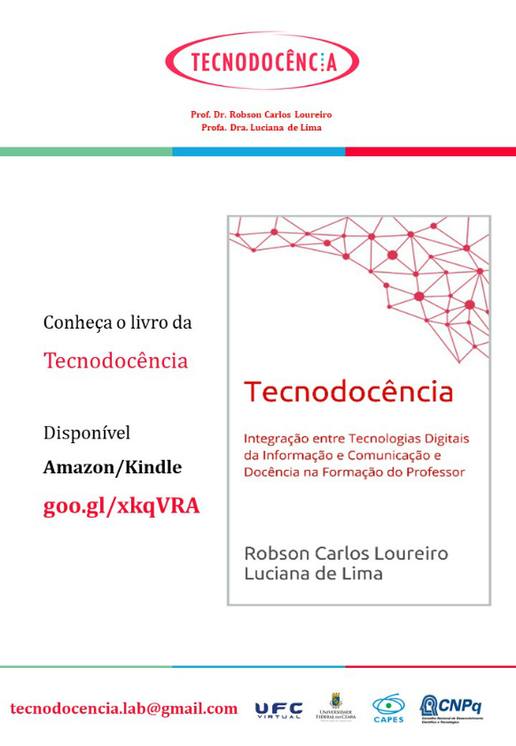 "Um novo conceito sobre docência." É assim que o Prof. Robson Carlos Loureiro, do Instituto UFC Virtual, caracteriza a proposta lançada por ele e pela Profª Luciana de Lima, também do instituto, através do livro digital Tecnodocência, que sugere a integração entre metodologias e didáticas do ensino e usos das tecnologias contemporâneas. A publicação já se encontra disponível na plataforma Amazon.
