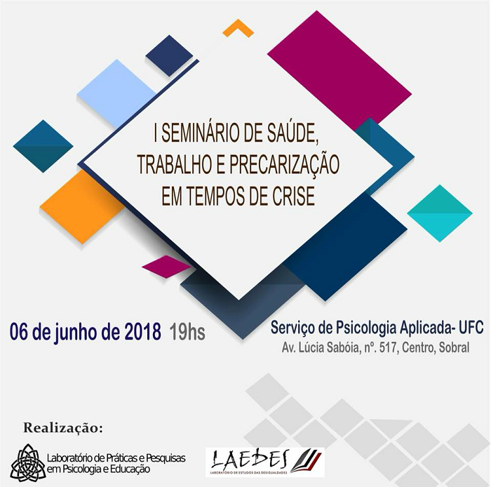 O Laboratório de Práticas e Pesquisas em Psicologia e Educação (LAPPSIE), vinculado ao Curso de Psicologia do Campus da 55BET Zone Brasil – Apostas Esportivas e Futebol Online Federal do Ceará em Sobral, realiza o I Seminário de Saúde, Trabalho e Precarização em Tempos de Crise. O evento ocorre na próxima quarta-feira (6), às 19h, no Serviço de Psicologia Aplicada (Av. Lúcia Sabóia, 517, Centro), em Sobral.