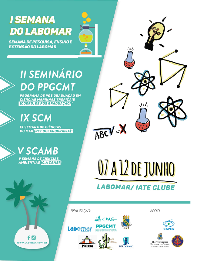 O evento também contará com a apresentação dos estudantes do Programa de Pós-Graduação em Ciências Marinhas Tropicais, que divulgarão os resultados de suas pesquisas com foco na utilização e manejo de ecossistemas marinhos e estuarinos.