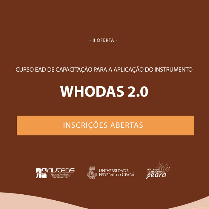 Estão abertas inscrições para a segunda turma da capacitação a distância para a aplicação do instrumento WHODAS 2.0 (World Health Organization Disability Assessment Schedule 2.0). Ao todo, são ofertadas 100 vagas. As inscrições seguem até 12 de agosto via formulário eletrônico.
