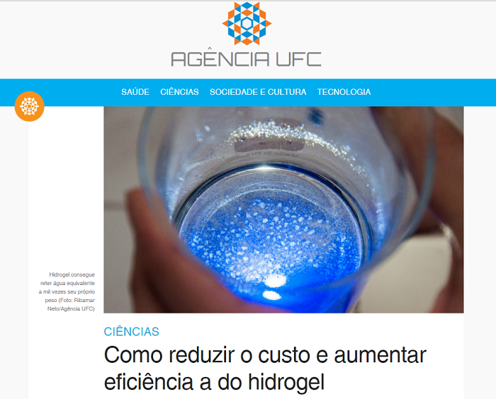 INTERAÇÃO ‒ A Profª Judith Feitosa, do Departamento de Química Orgânica e Inorgânica, teve sua pesquisa sobre o hidrogel divulgada pela Agência UFC. "A divulgação do nosso projeto suscitou uma interação com o Departamento de Ciências do Solo. Então estamos dando início, juntamente a pesquisadores deste departamento, a uma pesquisa com hidrogel a partir dessa divulgação que foi feita", conta a professora, que considera a iniciativa "extremamente importante".