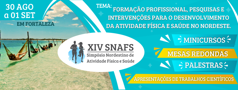 Com o tema central "Formação profissional, pesquisas e intervenções para o desenvolvimento da atividade física e saúde no Nordeste", o XIV Simpósio Nordestino de Atividade Física e Saúde ocorrerá no Oásis Atlântico Imperial Hotel (Av. Beira Mar, 2500, Meireles), nos próximos dias 30 e 31 de agosto e 1 de setembro. As inscrições para submissão de trabalhos estão encerradas, mas os interessados em participar da programação como ouvintes podem se inscrever até o primeiro dia do evento.