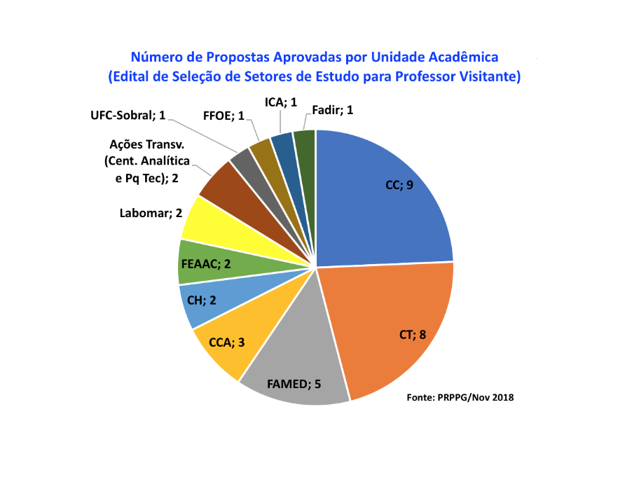 Foram submetidas 47 propostas e, após todo o processo de julgamento do mérito, foram aprovadas 37. Cada proposta aprovada consiste na possibilidade de contratar, por meio de chamada pública, professores visitantes por um período mínimo de seis meses e máximo de 24 meses.