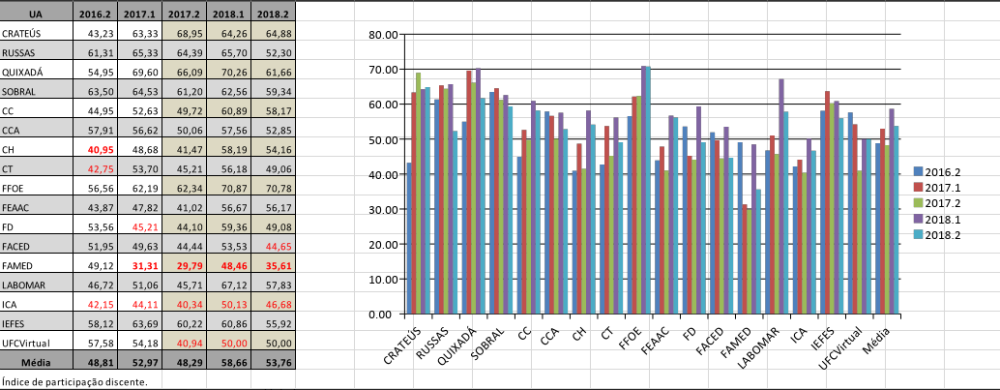 De acordo com o presidente da CPA, José Lassance, a participação dos estudantes teve índices menos expressivos, mas "ainda assim, satisfatórios, registrando a segunda maior taxa dos últimos anos". O índice de participação discente, que em 2018.2 ficou em 53,76%, só não foi maior do que o registrado em 2018.1 (58,66%).
