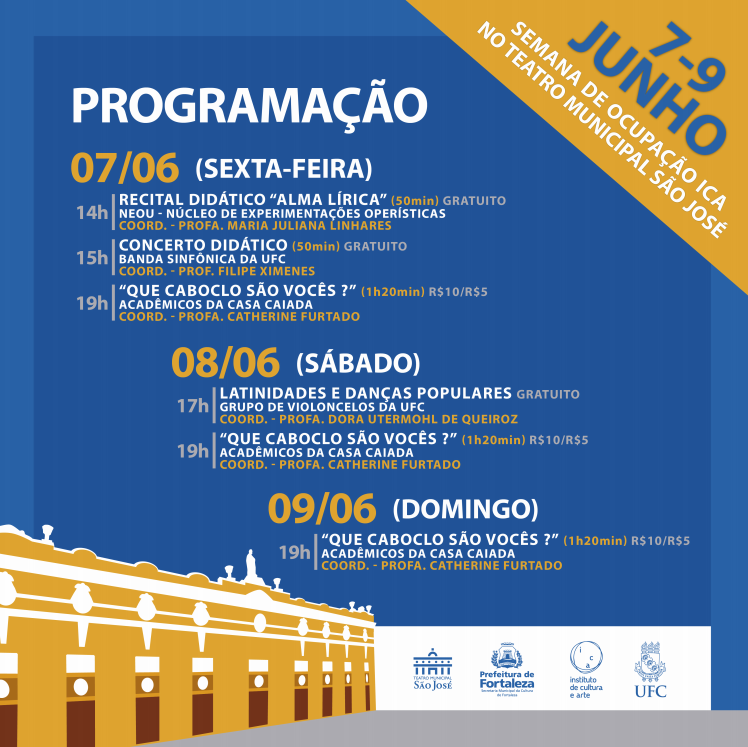 Fonte: Setor de Produção Cultural do Instituto de Cultura e Arte da UFC – fone: (85) 3366 9222 / e-mail: Este endereço de email está sendo protegido de spambots. Você precisa do JavaScript ativado para vê-lo.