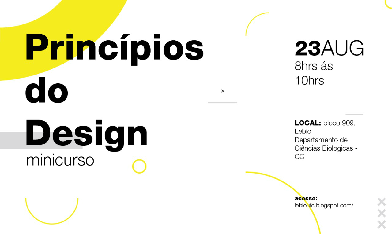Já o minicurso sobre Os princípios do Design ocorrerá às sextas-feiras, das 8h às 10h, a partir do dia 23 de agosto, também na sala do LEBIO. Ministrada por Rauane Batista Peixoto, aluna do Curso de Sistemas e Mídias Digitais, a atividade irá demonstrar os quatro princípios básicos do design (contraste, alinhamento, repetição e proximidade) e a importância de se ter noção de design na hora de preparar trabalhos acadêmicos.