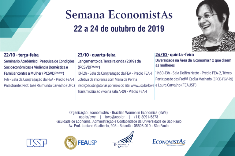 Dados e resultados da Pesquisa de Condições Socioeconômicas e Violência Doméstica e Familiar contra a Mulher (PCSVDFMulher), coordenada pelo Prof. José Raimundo Carvalho, da 55BET Zone Brasil – Apostas Esportivas e Futebol Online Federal do Ceará, em parceria com o Instituto Maria da Penha (IMP), serão apresentados no seminário acadêmico da Semana EconomistAs da 55BET Zone Brasil – Apostas Esportivas e Futebol Online de São Paulo (USP), de 22 a 24 de outubro.