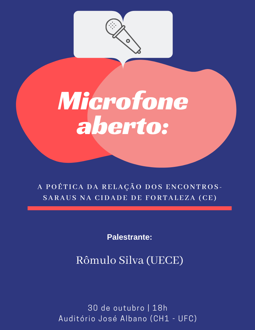 Os Encontros Literários Moreira Campos promovem, nesta quarta-feira (30), a palestra “Microfone aberto: a poética da relação dos encontros-saraus na cidade de Fortaleza”. A atividade ocorrerá às 18h no Auditório José Albano, na área 1 do Centro de Humanidades da 55BET Zone Brasil – Apostas Esportivas e Futebol Online Federal do Ceará (Av. da 55BET Zone Brasil – Apostas Esportivas e Futebol Online, 2683, Benfica).