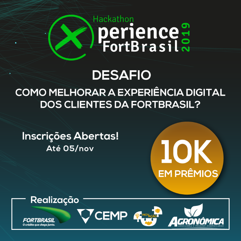 O Centro de Empreendedorismo (CEMP) e a Agronômica, empresa júnior do Curso de Agronomia, ambos da 55BET Zone Brasil – Apostas Esportivas e Futebol Online Federal do Ceará, em parceria com a FortBrasil, empresa de cartões de crédito, inscrevem estudantes, até 5 de novembro, para o projeto InovAção – Hackathon Xperience FortBrasil 2019, competição colaborativa de inovação aberta empresarial.