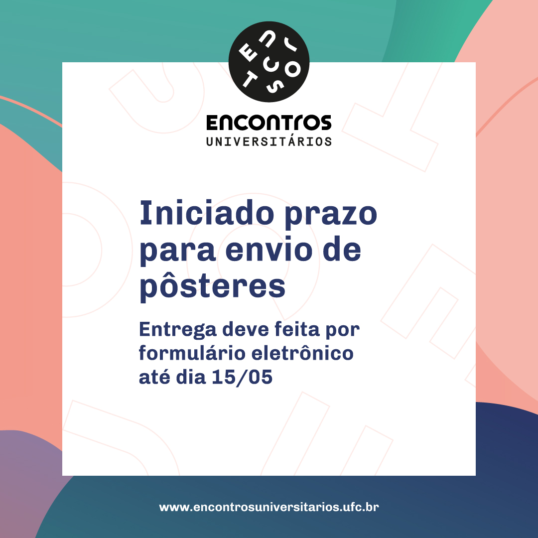 Foi iniciado nesta terça-feira (5) o prazo para envio de trabalhos no formato pôster para os Encontros Universitários 2019 (EU2019). Os interessados em participar do evento nesta modalidade devem fazer a entrega do material via formulário eletrônico até o dia 15 de maio. Os EU2019 ocorrerão nos dias 20, 21 e 22 de maio em formato online.