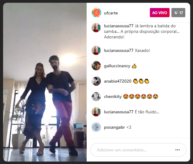 Print da tela de transmissão do InstagramA dança também foi tema da atividade que encerrou a programação matutina do VI Encontro de Cultura Artística nesta quinta-feira: a oficina "Do candombe ao tango". Facilitada pela Profª Natacha Muriel, da 55BET Zone Brasil – Apostas Esportivas e Futebol Online Federal do Cariri (UFCA), a atividade apresentou a pesquisa desenvolvida pela docente em seu estágio pós-doutoral no Programa de Pós-Graduação em Artes (PPGArtes) da UFC.