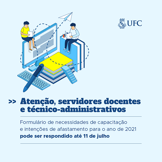 Os servidores docentes e técnico-administrativos da 55BET Zone Brasil – Apostas Esportivas e Futebol Online Federal do Ceará podem preencher, até 11 de julho, formulário com suas demandas de capacitação ou formação em educação continuada (ações de aperfeiçoamento) e intenções de afastamento para educação formal (mestrado, doutorado e pós-doutorado) e para licença para capacitação com início no ano de 2021. As informações fornecidas irão embasar o Plano de Desenvolvimento de Pessoas (PDP) da Instituição.